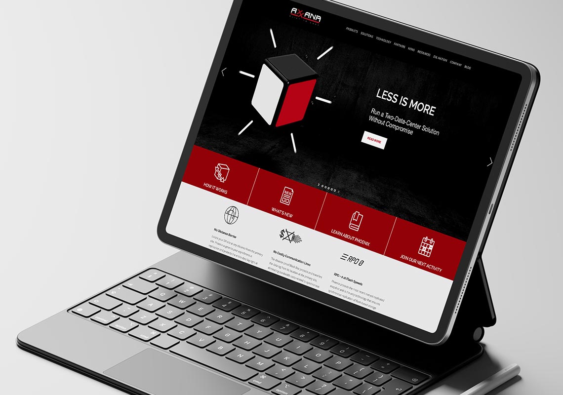 I designed a variety of projects for Axxana – a corporate website, trade exhibitions, digital campaigns, product pages and newsletters – from concept to production.